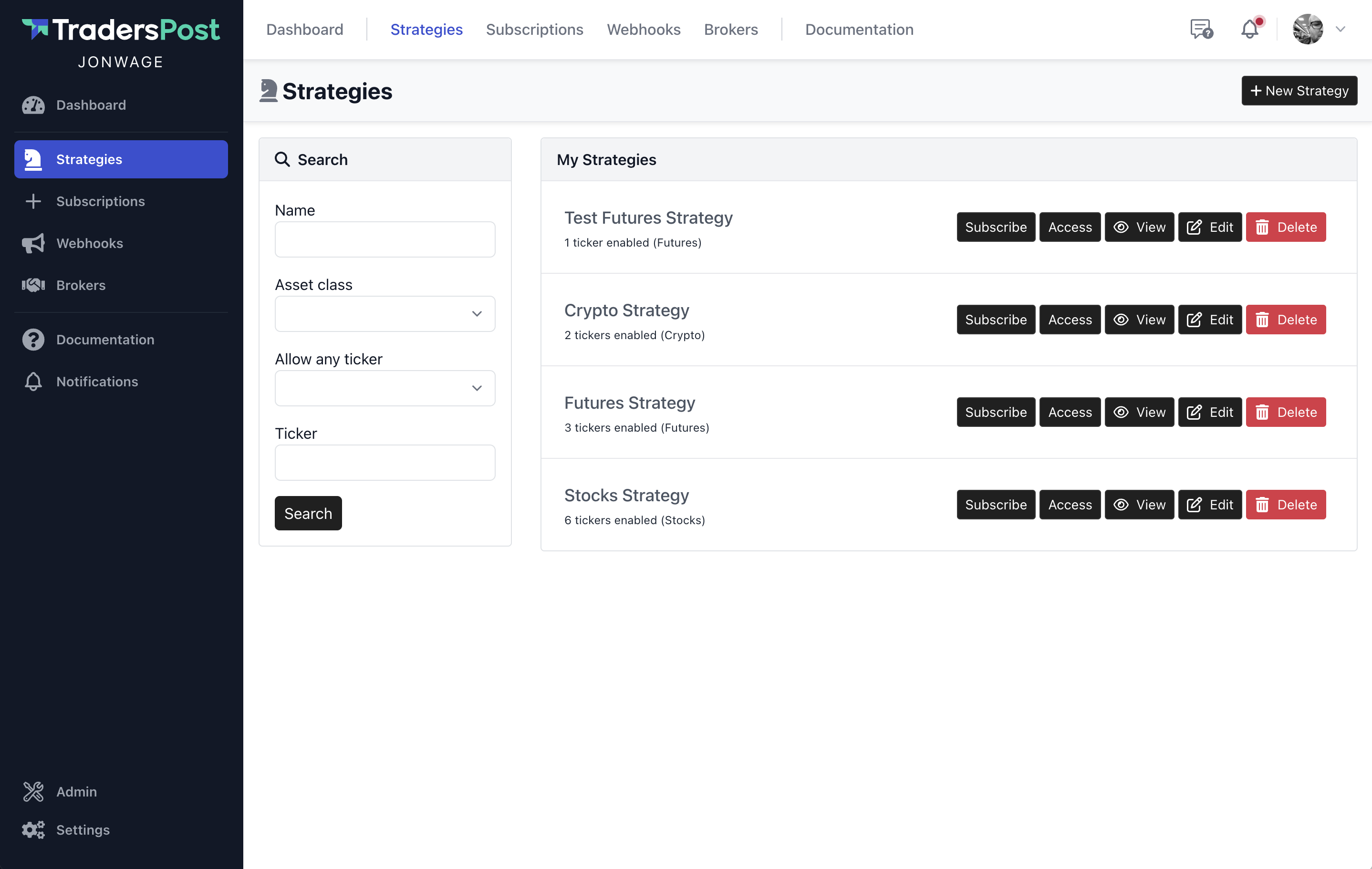 You now have the ability to search your strategies, subscriptions and webhooks with the search form in the left column.