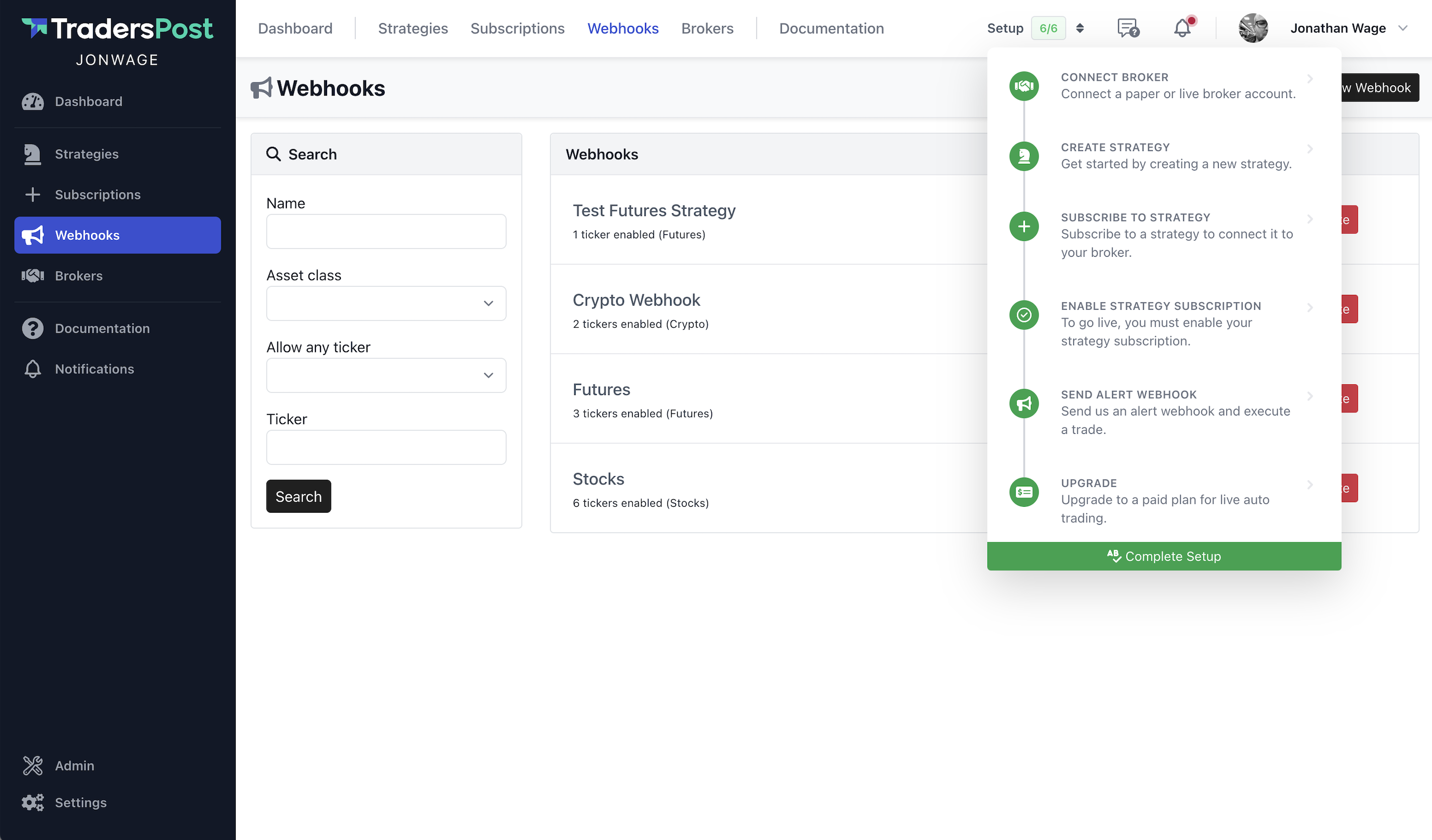 Getting setup with TradersPost can be challenging, there are a lot of moving pieces. In this release we added a simple setup wizard that can help guide you through setting up a strategy and getting it connected to your broker.